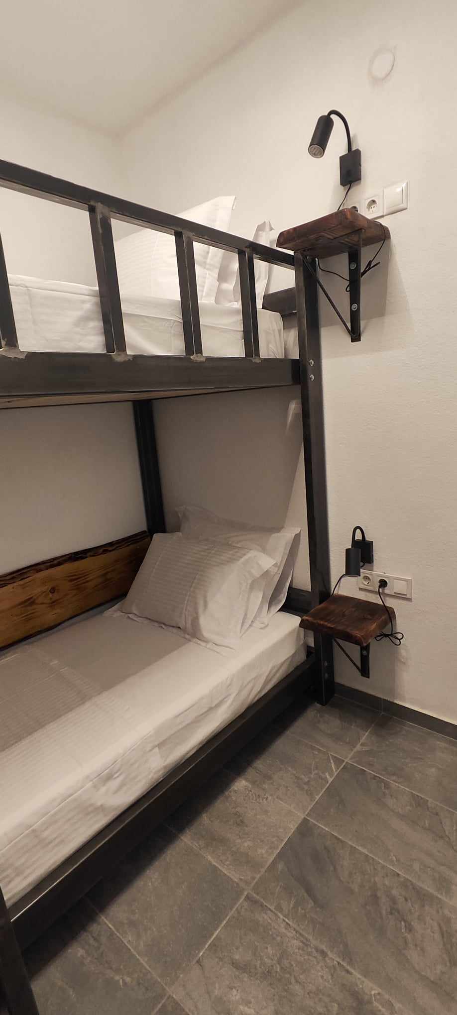 With two rooms, one with a spacious Queen size double bed , make-up table and Smart TV and the other with an extremely sturdy double bunk bed, specifically engineered to be, big enough to accomodate, fully grown adults laying down or sitting. Without the slightest feel of confinement or discomfort.